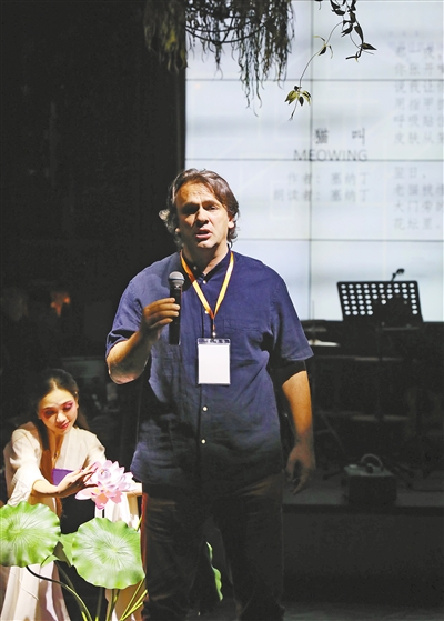 波黑詩(shī)人塞納丁朗誦自己的作品。