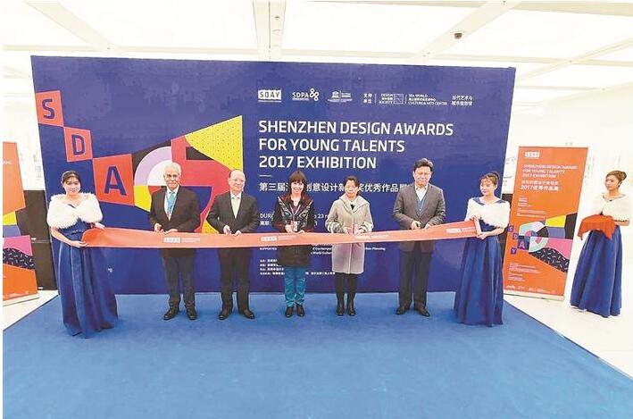 深圳創(chuàng)意設計新銳獎優(yōu)秀作品展開幕式剪彩環(huán)節(jié)。