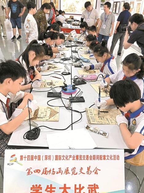 第四屆烙畫展覽交易會(huì)組委會(huì)負(fù)責(zé)人介紹,過去一年,光明烙畫在光明新區(qū)管委會(huì)的大力支持和社會(huì)各界的幫助下,已走進(jìn)部分學(xué)校授課,受到學(xué)生們的歡迎。在第八屆中國國際新聞短片節(jié)中,烙畫得到了國際友人的了解、認(rèn)可,更得到他們的喜歡和點(diǎn)贊。今年4月6日,光明烙畫也走進(jìn)了北京大學(xué)校園,得到師生們的一致好評(píng)。為了辦好今年的展交會(huì),組委會(huì)于2018年1月份就開始籌備、宣傳、征稿,來自全國20多省市的120余名烙畫藝術(shù)家參加,作品有300余幅。參展作品題材豐富多樣,有人物畫、山水畫、動(dòng)物畫、靜物畫、歷史畫等,其中山水畫中以描繪祖國大好河山的居多。同時(shí),本屆展交會(huì)分兩大展示區(qū),分別是烙畫基地展示區(qū)和光明新區(qū)文化館展示區(qū),其中烙畫基地展區(qū)內(nèi)又分為九個(gè)區(qū)域。此次活動(dòng)安排了烙畫藝術(shù)家畫光明,童心的世界才藝表演,烙畫大比武,特邀國家級(jí)大師走進(jìn)光明等特色活動(dòng),讓每位參觀者體驗(yàn)具有時(shí)代藝術(shù)特色的烙畫盛宴。