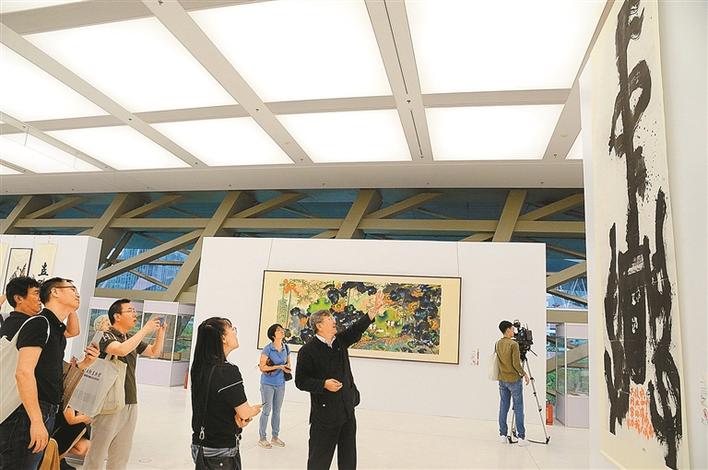 重彩渲染的荷花、古樸典雅的篆刻、清奇的水墨、雄渾的書(shū)法……一場(chǎng)別有風(fēng)味的海派藝術(shù)大展——“不逾矩不——韓天衡書(shū)畫(huà)印展”于今日在深圳市當(dāng)代藝術(shù)與城市規(guī)劃館舉行。