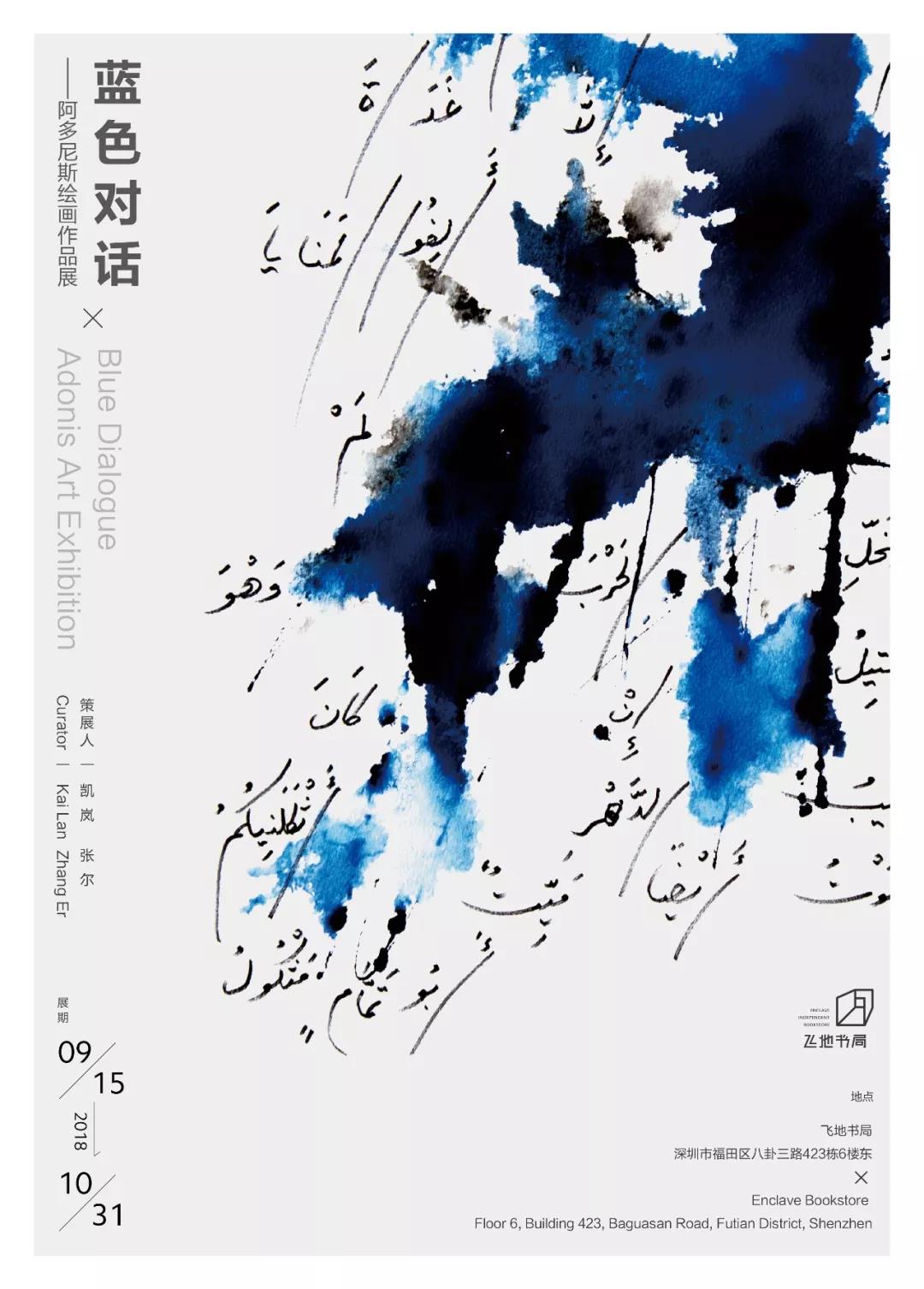 飛地書(shū)局將于9月15日至10月31日展出“藍(lán)色對(duì)話——阿多尼斯繪畫作品展”。展覽由凱嵐與張爾策劃,呈現(xiàn)詩(shī)人阿多尼斯五個(gè)系列的繪畫。