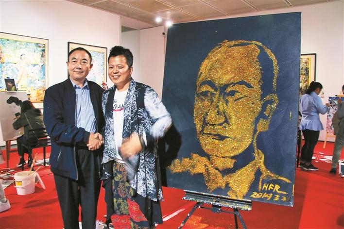 當(dāng)天,全至科技創(chuàng)新園內(nèi)的數(shù)十名員工在“演畫”創(chuàng)始人黃鳳榮的帶領(lǐng)下體驗(yàn)了拼貼創(chuàng)作的樂趣?,F(xiàn)場(chǎng)黃鳳榮展示了潑粉、拼貼等多種演畫手法。他的“瞬時(shí)金粉畫”因其戲劇性的藝術(shù)效果令現(xiàn)場(chǎng)掌聲雷動(dòng)。