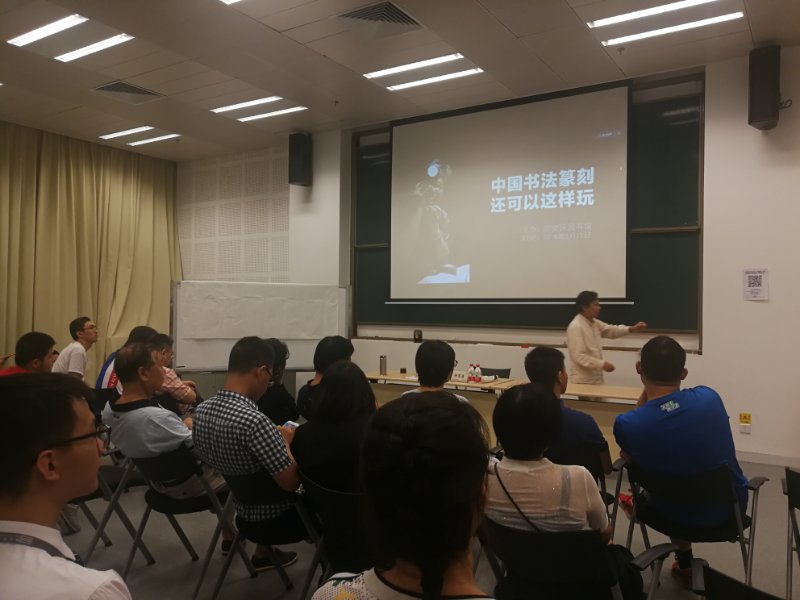 在2個小時的講座中,鐘國康妙語連珠,用生動幽默的語言將博大精深的書法篆刻文化表現(xiàn)得淋漓盡致,講座現(xiàn)場掌聲連連。鐘國康認(rèn)為,書法篆刻之術(shù),只有筆性、墨性、石性、紙性、心性,全方位嚴(yán)謹(jǐn),筆力勁駿,心手相應(yīng),技藝熟練,才能做到庖丁解牛,勢如破竹,可進(jìn)可退,正可謂“惟習(xí)之至熟,自可心手相應(yīng)”。他還現(xiàn)場潑墨揮毫,演示篆書的寫法,詳細(xì)講解并現(xiàn)場演示了篆刻的方法,重點(diǎn)分享自己在單刀法和雙刀法上的獨(dú)特見解。單刀法要“有多狠刻多狠,有多猛刻多猛,有多深刻多深,有多長線條刻多長線條”,而雙刀法即在“單刀之回馬槍重刻一遍相反之單刀法”。一些幸運(yùn)的書法、篆刻愛好者還通過搶答的方式,獲贈書法篆刻作品。(通訊員 孫善文)