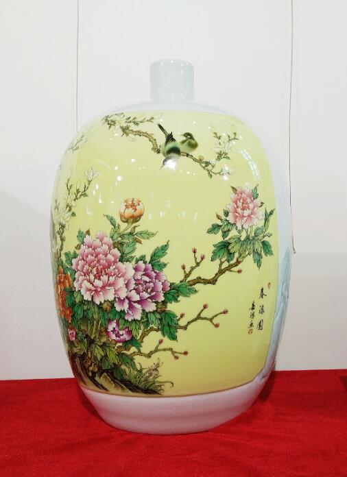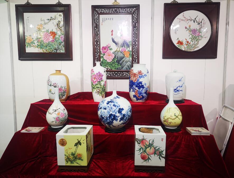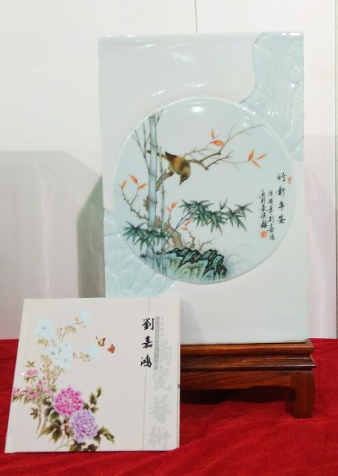 江西省陶瓷技能大師、江西省高級(jí)工藝美術(shù)師、惲派花鳥(niǎo)第十二代傳人、景德鎮(zhèn)青年陶瓷藝術(shù)家劉嘉鴻此次展會(huì)展出的陶瓷藝術(shù)作品共計(jì)35件,包含瓷板畫、瓷瓶、瓷盤、青花瓷、青花斗彩瓷等,其中《春滿園》、《錦堂富貴》、《長(zhǎng)壽圖》等作品呈現(xiàn)陶瓷技藝,展示出劉嘉鴻深厚的藝術(shù)造詣。