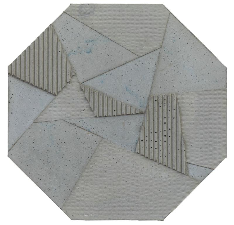 自2013年王豪開始以水泥作為個人創(chuàng)作媒介以來,三個系列“寂”、“樸”、“遠”并行展開?!凹拧焙汀皹恪睆娬{(diào)水泥作品的靜態(tài)特征,不論是單件作品還是多件組合作品,在水泥材料的細微變化與色塊搭配上,力求傳達出一種寧靜、樸拙的整體氣息;“樸”系列在形式上更為豐富,不僅嘗試使用斜線、三角形乃至圓形,還探索富于中國古典韻味的形式表達(例如對中國古代手卷的模擬);“遠”系列的名稱則來源于中國傳統(tǒng)山水繪畫所特有的透視技法“三遠”概念,這系列作品意圖通過畫面的動態(tài)表現(xiàn)打破二維空間限定,拓展平面繪畫的深度與廣度,從美學意境上與高遠、深遠、平遠相融合。