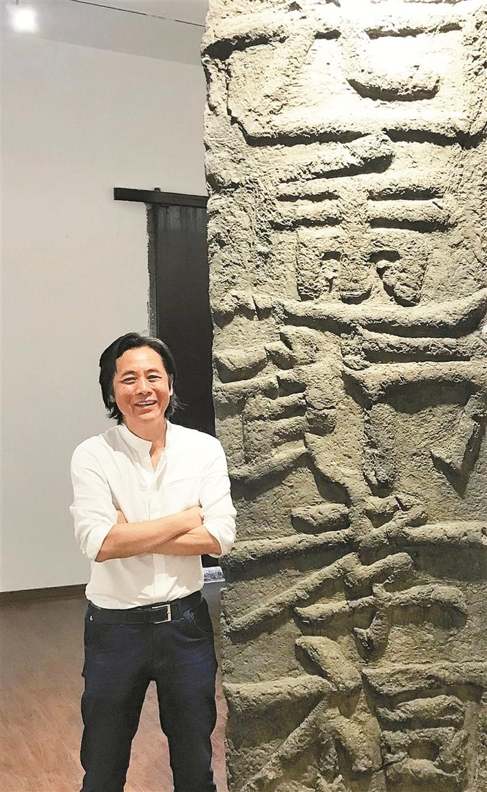 其中,矗立在展場中的大型裝置《磚魂》就是我基于對消失隕落文化的痛惜而創(chuàng)作的。上個世紀(jì)90年代,西遞村的一位老者贈與的古建殘磚,據(jù)考證這是最后一塊刻有“西遞節(jié)孝祠”字樣的古磚?!洞u魂》是對這塊古磚復(fù)制并放大而成的作品,其材料是我在蕪湖古城廢墟揀的無數(shù)清代磚頭。我用箱子把它們運(yùn)到深圳,在深圳的工業(yè)園區(qū),用壓路機(jī)把它壓成粉末。在我看來,碾成粉末的不僅是建筑的骨灰,還有我的童年,幾代人的生活記憶,拆掉的不止是廢墟,更是一方古老的文化傳統(tǒng)。最后磚粉混合著泥土豎起一個重600公斤,高3.2米的大磚頭,我命名為《磚魂》。