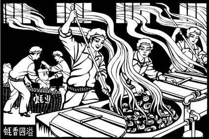 饒凱玉從來(lái)沒(méi)學(xué)過(guò)國(guó)畫(huà),也沒(méi)接受過(guò)正規(guī)的美術(shù)教學(xué)。在集訓(xùn)一個(gè)月期間,老師給她一本書(shū),建議她向國(guó)畫(huà)發(fā)展。她發(fā)現(xiàn)書(shū)里有幾幅小剪紙圖很有趣,突然勾起她的創(chuàng)作靈感,為什么不畫(huà)農(nóng)村題材呢?她決定創(chuàng)作農(nóng)村“四員”(出納、會(huì)計(jì)、保管、記工員),“四員”是當(dāng)時(shí)典型的社會(huì)人物?!拔也灰?huà)國(guó)畫(huà),要刻紙成畫(huà)?!别垊P玉說(shuō)。當(dāng)時(shí),她先用毛筆在紙上勾勒出形象,修改定稿,后用印寫(xiě)紙反轉(zhuǎn)復(fù)印在刻紙上,再用刀刻紙成畫(huà)。