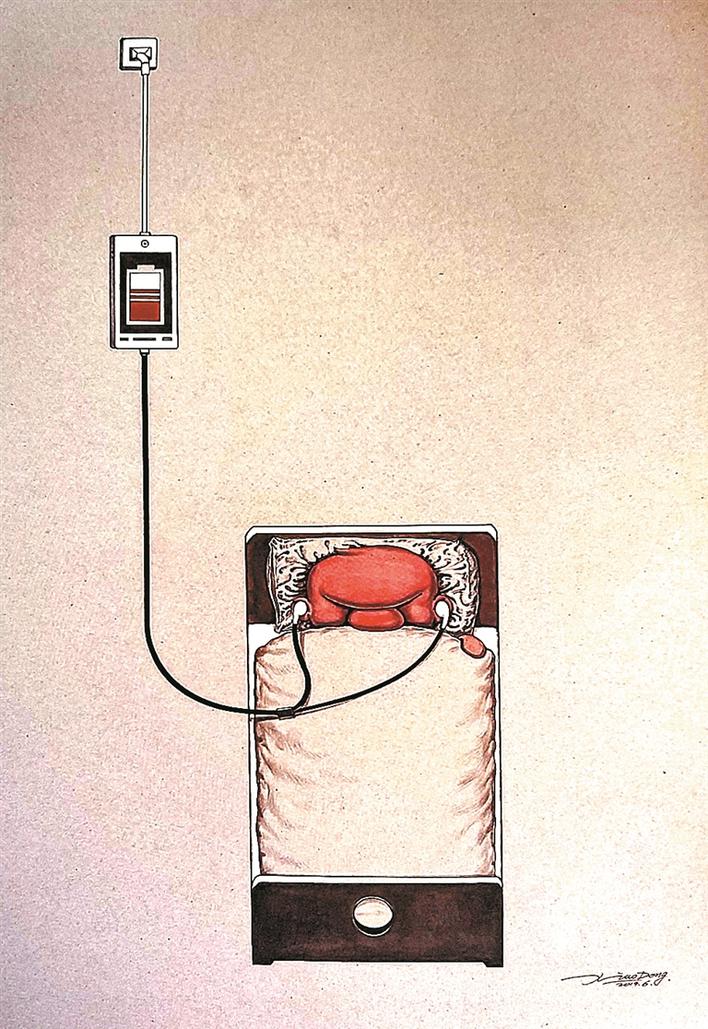 上榜漫畫家鄧微觀系深圳市寶安區(qū)打鐵文藝社社長,其《感物系列》以見物興感為主線,展開豐富的想象力,用動物擬人的方式幽默詼諧地抒發(fā)人生感悟,讓人會心一笑之余引起共鳴,令觀眾感嘆藝術家的漫無邊際的“腦洞”。對于作品首次入選國內(nèi)美術界規(guī)格最高的國展,鄧微觀很興奮:“這是對我這個系列作品的高度肯定?!薄陡形锵盗小废盗凶髌吩从谒e逛發(fā)呆時的想象碎片,將這個碎片貫穿就成了這個系列作品。鄧微觀在茶余飯后經(jīng)常到鐵崗的西鄉(xiāng)河邊散步,河中不時傳來低頻厚實的“男低音”引起他的注意,此起彼伏,聽來如交響曲一般通達舒暢。他循聲尋覓,原來是蛤蟆的聲音,只見這些“音樂家”在下水道洞口,在草叢中,河道縫中快樂地歡唱……這些天生的樂觀者給鄧微觀帶來美妙的心情,所以創(chuàng)作了這幅《天生樂觀》。再如《三餐之余》,有時飯后經(jīng)常會在茶幾前發(fā)發(fā)呆,思考人生不應該只是面包和蘋果,還應有點別的……