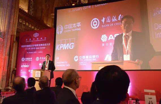 (1月18日,英國中國商會首屆“中英經濟貿易論壇”在倫敦金融城市政廳隆重舉辦,太平英國總經理耿金海致閉幕詞。)