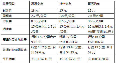 從各家平臺的價格列表來看,同樣選擇20萬級別專車,滴滴起步價為13元,普通時段里程費為2.7元/公里,時長費為0.6元/分鐘,神州起步價為15元,普通時段里程費為2.8元/公里,時長費為0.5元/分鐘,首汽起步價及里程費分別為12元與2 .6元/公里,在普通白天時段綜合對比,這里三家都沒有呈現(xiàn)特別突出的價格優(yōu)勢。