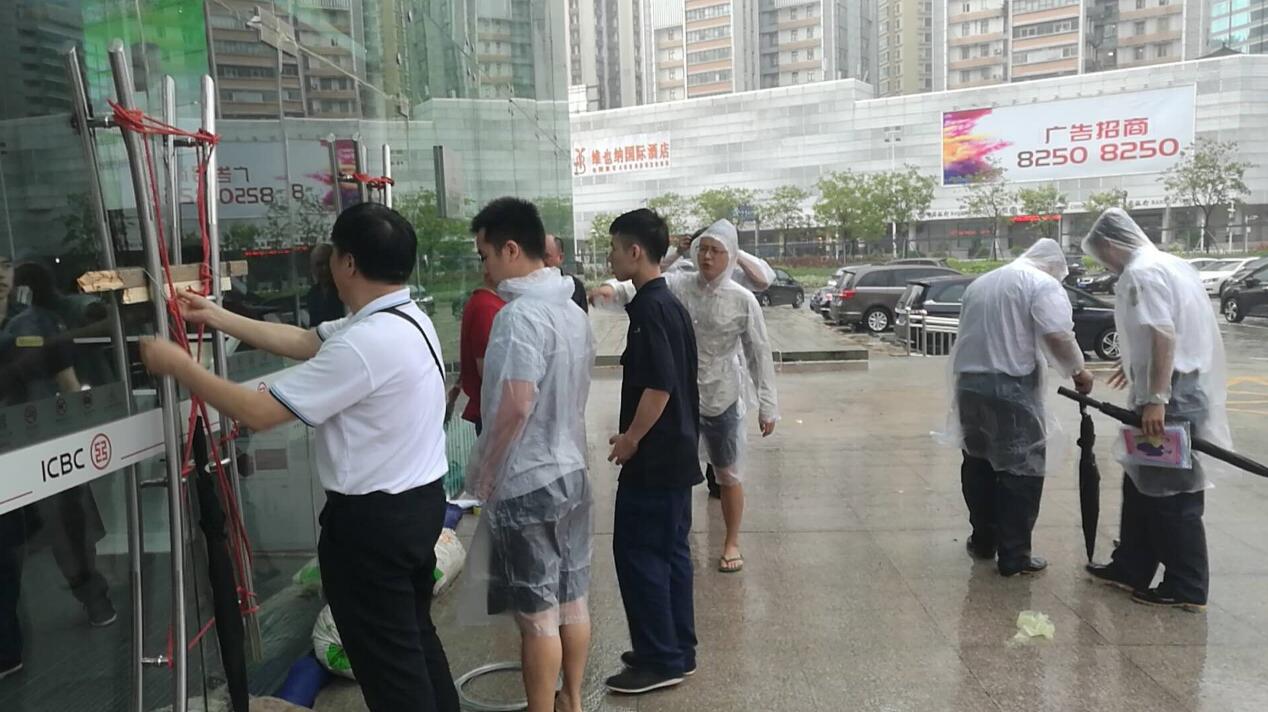 臺風過境后,城市樹木折斷、道路癱瘓、水電停供、通訊中斷、低洼內澇……正常的生產生活秩序受到沖擊和影響。因有效落實了安全防范和應急處理工作,工行深圳市分行系統(tǒng)并未發(fā)生重大災害和人員傷害事件。部分受災網點發(fā)生門窗損毀、門楣LED屏損壞、浸水導致停電等小事故十余起,均在第一時間得到有效應急修理處置,短時間內恢復全行受災網點的正常營業(yè)。
