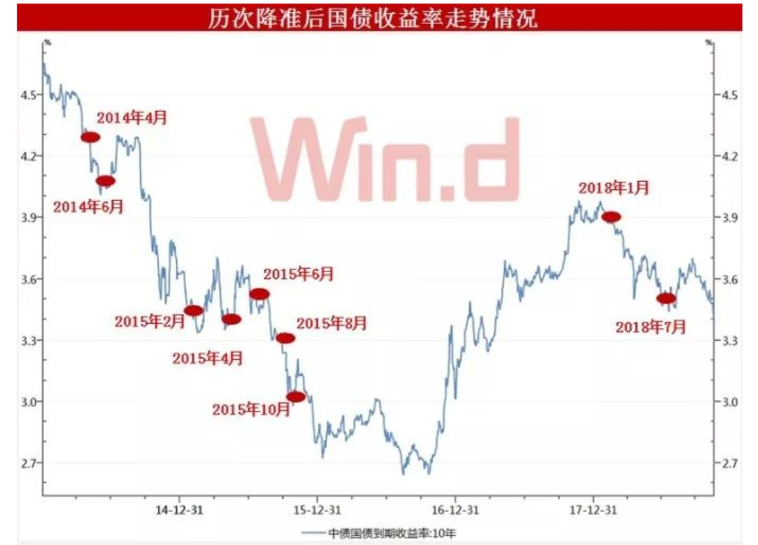 2018年央行已分別進行了2次定向降準、2次降準置換,分別分布在1、4、7、10月。此次降準后大型機構和中小型機構存準率分別降至13.5%、11.5%。