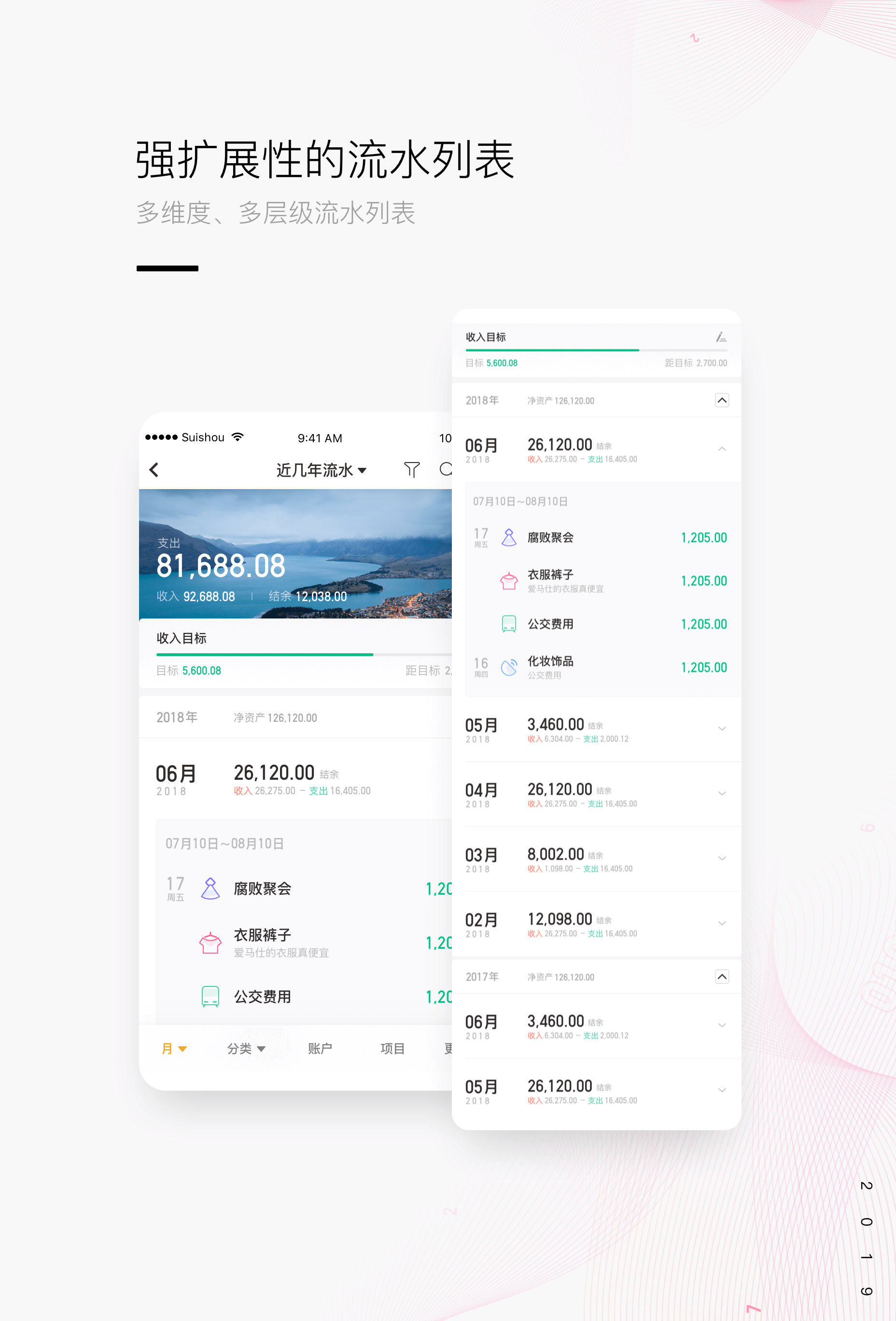 新版本還優(yōu)化了流水列表結(jié)構(gòu),凸顯層級(jí)區(qū)分,使內(nèi)容條目更清晰,向用戶(hù)呈現(xiàn)了更加直觀清楚的財(cái)務(wù)信息,方便用戶(hù)隨時(shí)掌握自己的財(cái)務(wù)狀況。