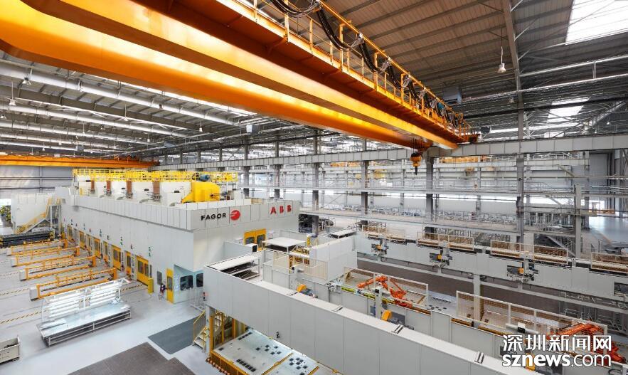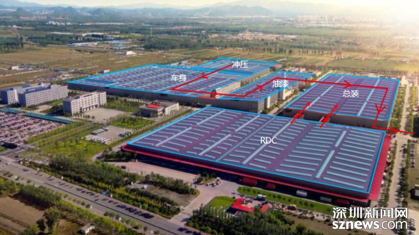 車(chē)身車(chē)間總占地面積9.9萬(wàn)㎡,采用互聯(lián)機(jī)器人、柔性NC定位系統(tǒng)、柔性?shī)A具切換系統(tǒng)、自動(dòng)化輸送系統(tǒng),標(biāo)準(zhǔn)化工藝體系、三層環(huán)網(wǎng)智能管理系統(tǒng)、國(guó)際安全標(biāo)準(zhǔn),主線自動(dòng)化率95%;采用柔性智能生產(chǎn)線,在同一條生產(chǎn)線可完成8個(gè)不同的車(chē)型無(wú)節(jié)拍損失自動(dòng)切換和混線生產(chǎn)。