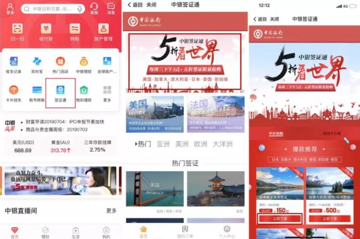 登錄手機(jī)銀行——簽證通——五折活動(dòng)專區(qū)