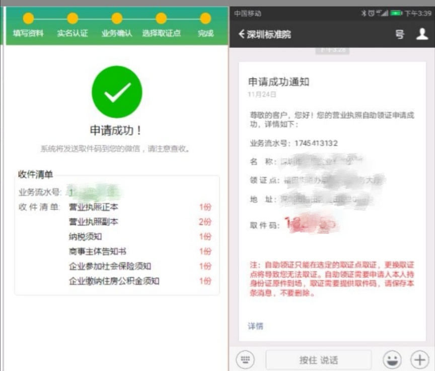 前往網點輸入取件碼刷臉打印營業(yè)執(zhí)照