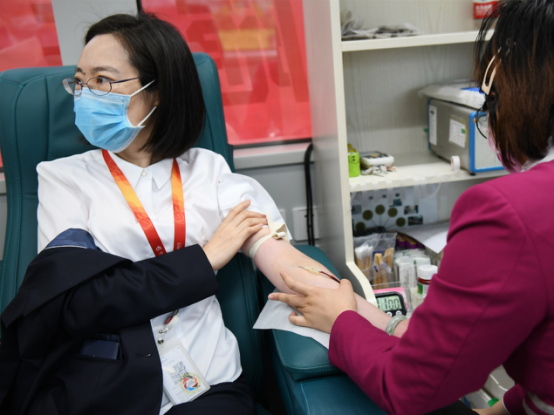 另一名華夏銀行的員工雖然有點(diǎn)暈血,但是絲毫不影響他想做貢獻(xiàn)的熱情。該員工一邊努力地把頭撇向一旁,一邊和記者聊天分散注意力。“現(xiàn)在是非常時(shí)期,我們不是醫(yī)生護(hù)士,沒辦法上前線;當(dāng)剛剛聽采血的護(hù)士說,現(xiàn)在醫(yī)院都很缺血。剛好行里組織了這次獻(xiàn)血活動(dòng),就來貢獻(xiàn)一點(diǎn)愛心。”