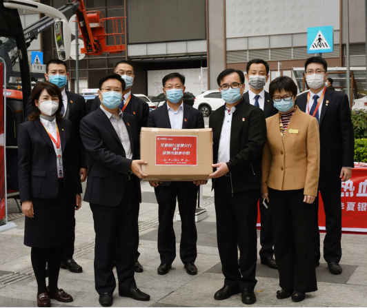 華夏銀行深圳分行行領(lǐng)導(dǎo)先后看望、慰問獻(xiàn)血員工。深圳市血液中心向華夏銀行深圳分行頒授感謝獎(jiǎng)牌,深圳分行孫海強(qiáng)副行長代表分行向血液中心捐贈(zèng)1000只口罩。