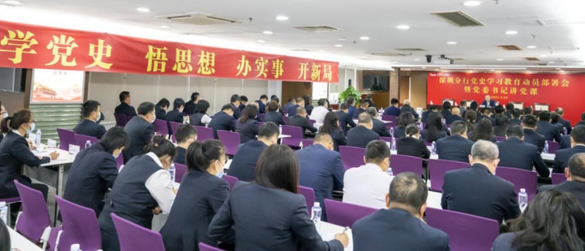會上,韓學智對分行開展黨史學習教育作了動員部署。他指出,在建黨100周年之際,黨中央組織開展黨史學習教育意義重大、正當其時。他對分行全體員工提出六點要求:一是通過學習進一步傳承紅色基因,堅定道路自信、理論自信、制度自信、文化自信,真正做到學史明理、學史增信、學史崇德、學史力行。二是各黨支部要按照統(tǒng)一部署,迅速行動,扎實開展黨史學習教育,尤其是黨員領導干部在學黨史、講黨史、懂黨史、用黨史方面要發(fā)揮示范帶動作用。三是采取特色鮮明、形式多樣的學習教育方式,提高學習效果。四是通過學習增強為民服務意識,貫徹好新發(fā)展理念,助力破解經(jīng)營發(fā)展難題,著力服務實體經(jīng)濟,服務民生。五是通過學習落實從嚴治黨要求,通過以案促改、從嚴治行,實現(xiàn)強思想、強組織、強隊伍、強作風、強紀律。六是通過學習增強擔當精神,把學習成效轉(zhuǎn)化為工作動力和工作成效,為深圳分行開新局做出積極貢獻,以實績慶祝建黨100周年。