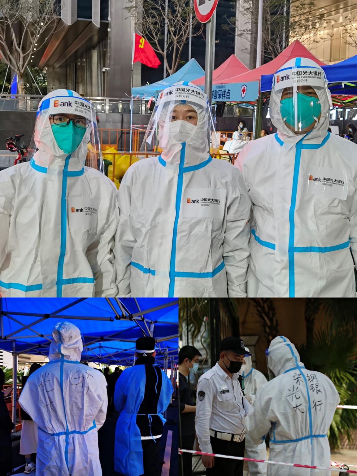 光大證券深圳分公司發(fā)揮基層黨組織戰(zhàn)斗堡壘作用和黨員先鋒模范作用,黨員干部迅速牽頭組建了“光證深分先鋒隊(duì)”,下沉基層抗疫一線,黨員同志們換上防護(hù)服、手套和隔離面罩深入蓮花街道多個(gè)社區(qū),全力協(xié)助醫(yī)護(hù)人員做好核酸檢測的輔助工作。從白天到黑夜的堅(jiān)守,頂著溫差很大的深夜寒風(fēng),保持良好狀態(tài),為廣大群眾的身體健康安全提供了有力保障。一句句暖心的提示、一個(gè)個(gè)忙碌的身影,光大證券深圳分公司的志愿者們,用實(shí)際行動(dòng),堅(jiān)定地守護(hù)著鵬城的人們!
