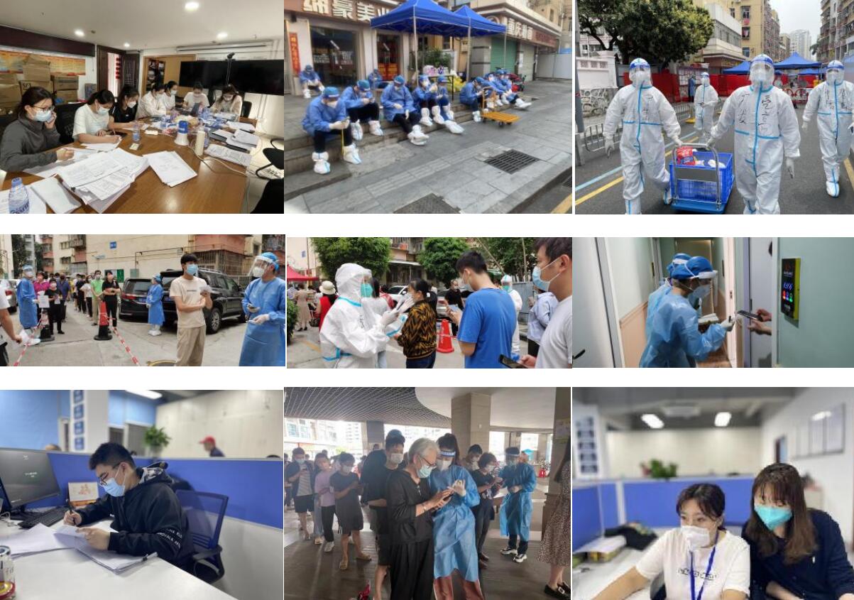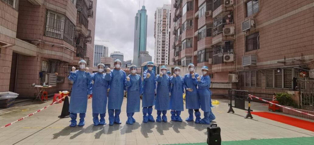 支援羅湖區(qū)金融署建立的金融抗疫志愿者隊伍一行24人,出色地完成了17日-20日的核酸檢測、核對人員、“掃樓”等抗疫志愿服務(wù)。