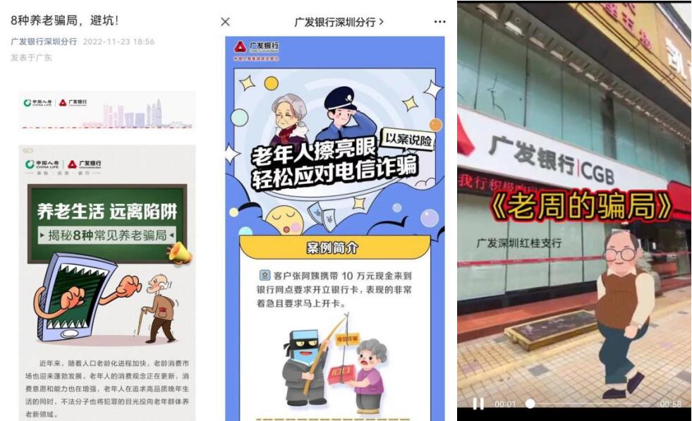 廣發(fā)銀行深圳分行積極運(yùn)用數(shù)字科技與新媒體宣傳相結(jié)合,通過發(fā)動全行開展寓教于樂的短視頻大賽方式來宣傳金融知識,提高老年人防范養(yǎng)老詐騙意識;通過分行微信公眾號發(fā)送防范非法集資、防范養(yǎng)老詐騙等宣傳軟文;加強(qiáng)對打著科技創(chuàng)新、綠色轉(zhuǎn)型等政策旗號,利用元宇宙、NFT等新概念的新業(yè)態(tài)新形態(tài)等非法集資活動進(jìn)行風(fēng)險(xiǎn)提示。