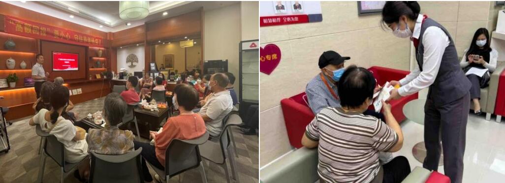 各網(wǎng)點(diǎn)邀請附近的老年客戶到行參與講座,以目前典型的養(yǎng)老騙局作為切入點(diǎn),通過播放分行自制養(yǎng)老防詐小短片,以生動的語言向老年人揭示一些宣稱以房養(yǎng)老為名,誘騙老年人抵押房產(chǎn)購買“高收益”理財(cái)產(chǎn)品等進(jìn)行非法集資詐騙的陷阱,向老年人普及新型詐騙趨勢,拓寬信息交流渠道,充分發(fā)揮銀行金融知識宣傳的網(wǎng)點(diǎn)效應(yīng)。