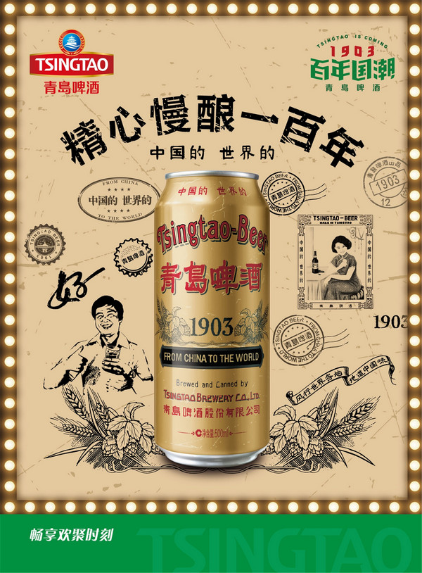 經(jīng)典1903國潮罐是青島啤酒為再造精釀傳奇,傳承青啤文化和品牌魅力的產(chǎn)品。采用源自1903年的“兩段法低溫釀造工藝”,精心慢釀,造就了醇香四溢的口感和體驗(yàn)。罐體上復(fù)刻了百年前經(jīng)典瓶貼畫面,是啤酒中的國潮和時(shí)尚的典范。