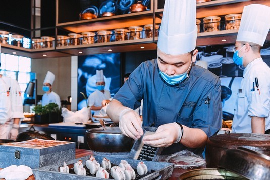 深圳福朋喜來登酒店行政副總廚劉干文利用廣東本地食材融和意大利風味,大鵬蟹肉蒜香意面展現(xiàn)有別于傳統(tǒng)海鮮意大利面的創(chuàng)意與活力;坐落于寶安區(qū)松崗商圈核心地帶的深圳聯(lián)投東方萬怡酒店行政總廚陳茂志以江南醉蟹為靈感之源,糅合粵式風味詮釋黃酒味淋冰浸小龍蝦,更有霹靂龍蝦湯泡飯用鮮美滋味碰撞出舌尖驚喜;坐落于南山科技園商業(yè)區(qū)的深圳灣萬怡酒店,其中餐行政總廚趙妃楊創(chuàng)作菜品開刀深海龍躉明爐米漿燴用順德明爐米漿配合深海龍躉魚片,利用過橋做法使傳統(tǒng)菜品煥然一新。
