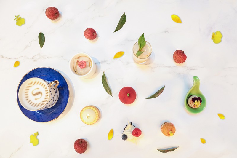 酒店餅房廚師長趙偉匠心獨運,使荔枝和傳統(tǒng)下午茶碰撞出別樣風情:芒果恰到好處的酸甜邂逅荔枝的宜人甘美,香芒荔枝慕斯杯里滿載的不就是夏天的專屬甜蜜;芝士蛋糕的醇厚滋味被荔枝的清爽巧妙平衡,多層次的口感讓人無限回味;當俏皮可人的荔枝被加入傳統(tǒng)甜品楊枝甘露,搭配冰涼爽口的荔枝雪芭,是妙趣橫生的獨特味覺體驗;法式焦糖燉蛋和荔枝的融合,恍若天成,是中西合璧的典范;日本帶子和荔枝的組合聽來不可思議,只有親試方能體會海陸鮮甜交匯的真意。