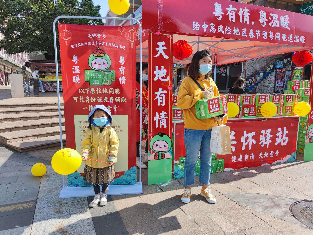 為讓留粵過年的同胞在“第二故鄉(xiāng)”廣東,也能夠感受到和在老家一樣的春節(jié)氛圍,今年,天地壹號舉辦“粵有情粵溫暖”公益活動,設立關懷驛站,旨在為留深過年市民送上了來自廣東企業(yè)的新年祝福。橫朗社區(qū)相關負責人介紹說,社區(qū)總?cè)丝?.2萬多人,大部分人都積極響應國家號召,選擇留下來就地過年。