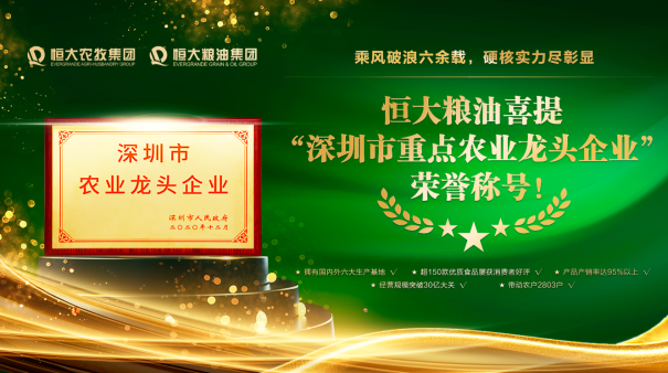 ?恒大糧油斬獲“深圳市重點(diǎn)農(nóng)業(yè)龍頭企業(yè)”稱(chēng)號(hào)