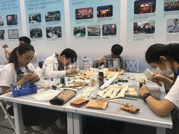 學(xué)生在做皮雕