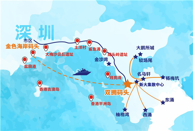 “鹽田金色海岸碼頭-南澳雙擁碼頭”航線(xiàn)示意圖(圖片由深圳航運(yùn)集團(tuán)提供)