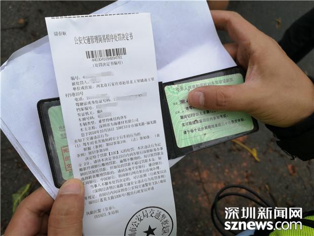深圳交警對泥罐車司機開出罰單:罰款100元扣2分