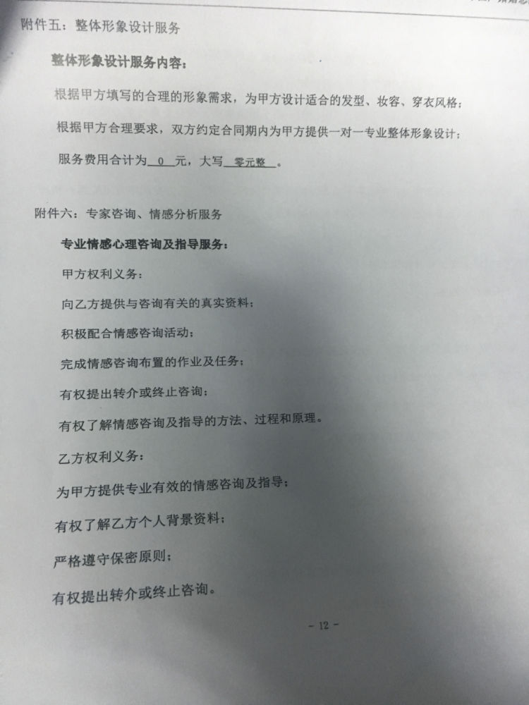 劉小姐提供的合同增值服務(wù)內(nèi)容,包含心理咨詢,個(gè)人宣傳片等服務(wù)。