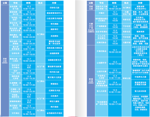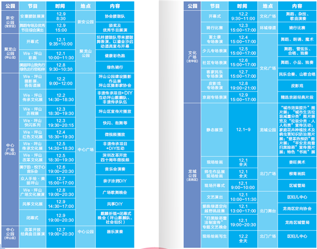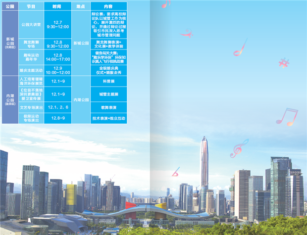2018深圳公園文化季將延續(xù)往屆經(jīng)典品牌節(jié)目,滿足不同受眾的多元需求,推出兒童音樂劇、世界極限運(yùn)動(dòng)表演、燃動(dòng)鵬城2018福田文創(chuàng)音樂周、全國航空模型公開賽、戲曲專場(chǎng)等活動(dòng)。同時(shí)結(jié)合各公園特點(diǎn),打造中心公園風(fēng)箏表演、翠竹公園首屆竹文化音樂會(huì)、皇崗公園非遺主題展、梅林公園社區(qū)展演、筆架山公園“深港穗”草地滾球賽等公園特色文化活動(dòng)。