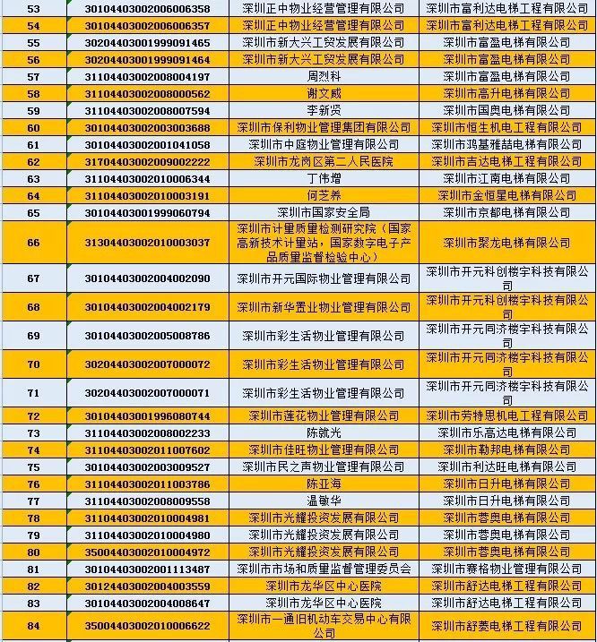 不合格電梯維保單位為:1、深圳市誠(chéng)禾機(jī)電設(shè)備有限公司;2、深圳市通宇電梯有限公司;3、深圳市安眾電梯工程有限公司;4、深圳市蓉奧電梯有限公司;5、清遠(yuǎn)市中日富士電梯有限公司;6、富士通(深圳)有限公司。