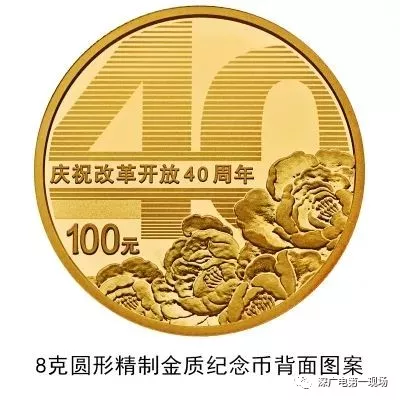 背面圖案為數(shù)字“40”造型與牡丹花組合設(shè)計(jì),并刊“慶祝改革開放40周年”字樣及面額。