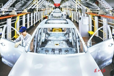 如今,武漢GDP超萬億。圖為工人們在汽車生產(chǎn)流水線上工作長江日報記者周超 攝