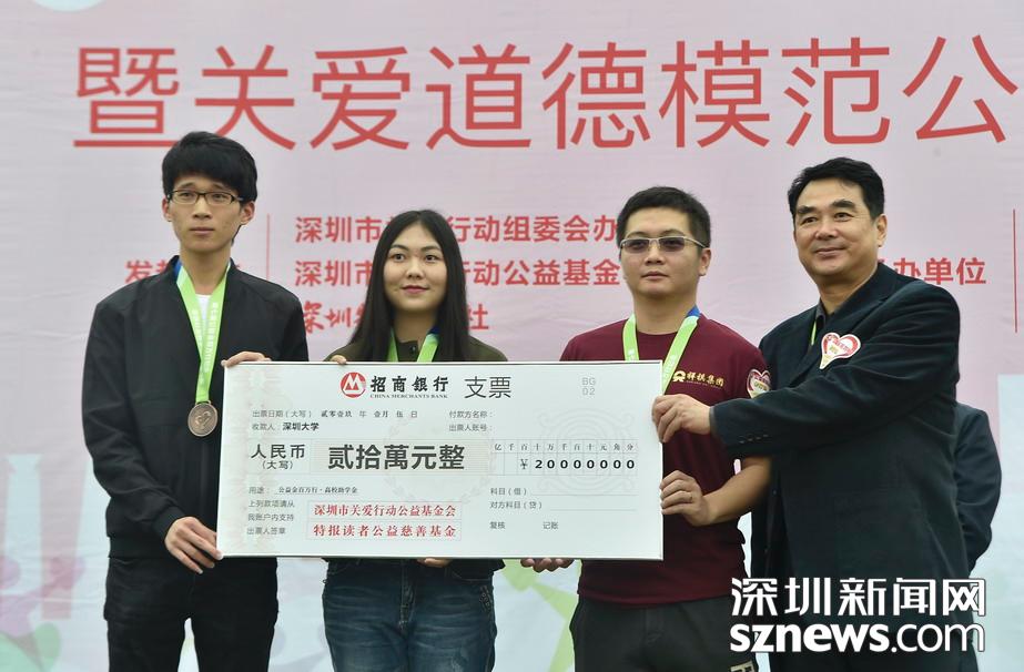 值得一提的是,在活動現(xiàn)場還舉行了“公益金百萬行”助學(xué)金捐贈儀式,為深圳大學(xué)、深圳職業(yè)技術(shù)學(xué)院、深圳信息學(xué)院三所高校各捐贈了20萬元,用于資助這三所學(xué)校的困難學(xué)子。迄今深圳特區(qū)報讀者公益慈善基金已資助1613名貧困大學(xué)生,累計資助金額達(dá)409萬元。