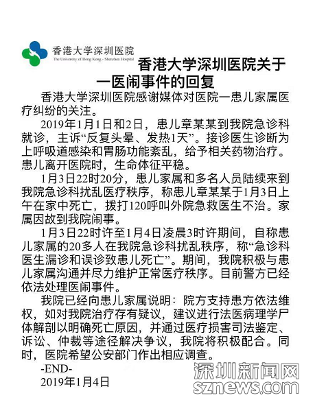 對(duì)此,港大深圳醫(yī)院回應(yīng):患兒離院時(shí)生命體征平穩(wěn),支持患方依法維權(quán)