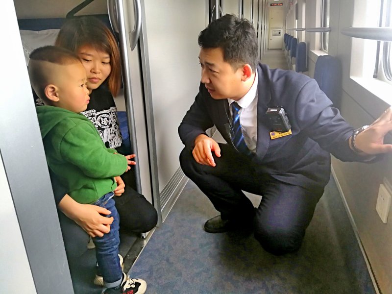 乘務(wù)組針對旅客不同需求進行重點服務(wù),用微笑拉進距離。旅客上下車期間,認真檢查設(shè)備設(shè)施狀態(tài),為旅客提供最舒適的乘車環(huán)境;