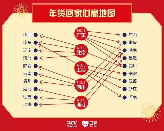 數(shù)據(jù)顯示,上海人在這一時間熱衷購買鮑魚、帝王蟹、大閘蟹作為年夜飯;而四川人則喜愛囤臘腸、魚類產(chǎn)品作年貨。而廣東人過年必點必吃盆菜,這道菜品在淘寶上銷量高漲不斷,十分受人追捧與喜愛。