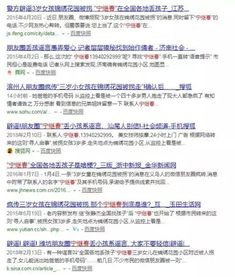 在網(wǎng)上搜索"寧繼春",就會發(fā)現(xiàn)這其實是一則不折不扣的假消息。從2014年起,全國各地就傳出錦繡花園小區(qū)"丟孩子"的網(wǎng)絡(luò)謠言,還有10萬元"重謝"的承諾。