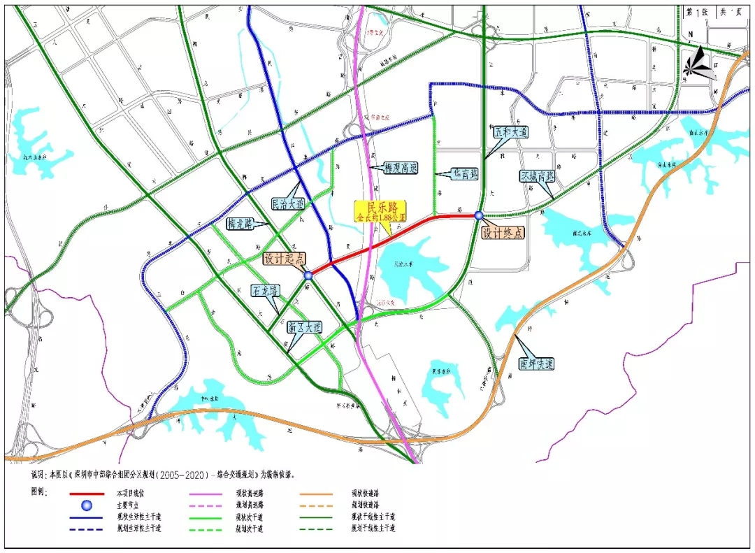 民樂(lè)路市政工程,位于深圳市中部綜合組團(tuán)境內(nèi)的民治街道及坂田街道,道路呈東西走向,西起梅龍路,向東跨梅觀高速后由現(xiàn)狀民治水庫(kù)北側(cè)經(jīng)過(guò),終點(diǎn)至五和大道。