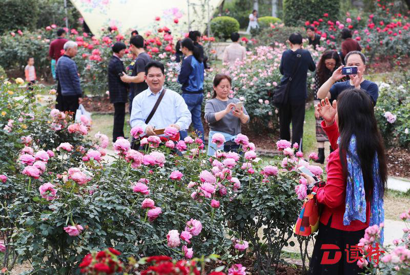 忘情月季開出詩情"花意"舉家賞花人氣旺