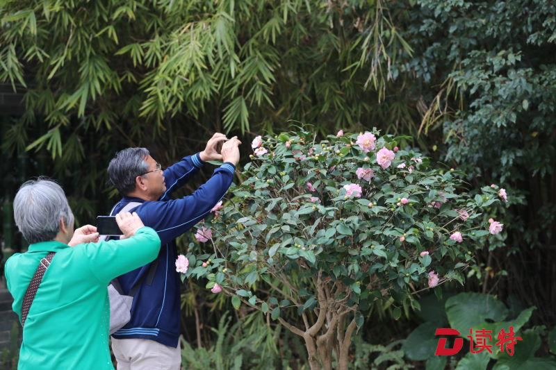 大年初五,天氣溫暖舒適,園博園里的游客一撥接一撥。也許是對(duì)中式傳統(tǒng)風(fēng)格的青睞,被茶花展吸引的客流中有不少中老年游客。"天氣好,花也美,美好的景色人人愛(ài)看,人老了心還沒(méi)老,也過(guò)來(lái)賞賞花拍拍照,高興!"年近七十的王阿姨非常開(kāi)心地說(shuō)。