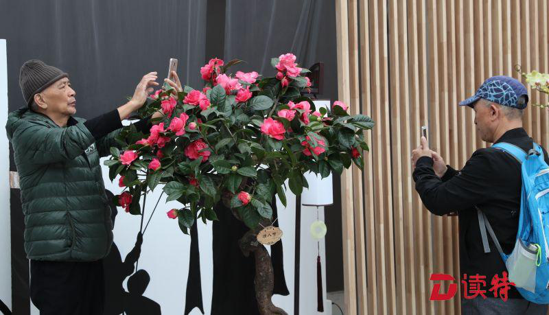 花卉館內(nèi)的室內(nèi)展區(qū)是此次茶花展的一大亮點(diǎn)。"佳境"、"夢(mèng)境"、"意境"、"秘境"、"禪境"5個(gè)觀賞區(qū),營(yíng)造出不同的茶花文化意境。其中"佳境"將擺放特色茶花盆栽,讓游人進(jìn)入到茶花營(yíng)造出的簡(jiǎn)潔雅致的意境中;"夢(mèng)境"利用"古樹(shù)"結(jié)合展示茶花插花藝術(shù),打造了夢(mèng)幻的展示空間;"意境"以茶花切花花藝作品為主,結(jié)合茶花本身的特性與中式元素,展示意境唯美、充滿古韻的茶花插花作品。"我最喜歡‘秘境’,茶花盆景和山水盆景配上中式花幾和屏風(fēng),是濃縮的雅致山水呀。"63歲的孟先生由衷贊賞,"這是以情調(diào)韻味取勝,太美了?。⒍睦习閱贪⒁虅t最喜歡"禪境":"茶花盆景搭配中式鏤空屏風(fēng),簡(jiǎn)直像一幅畫(huà),水中還有倒影虛實(shí)結(jié)合,很有意境?。?/p>