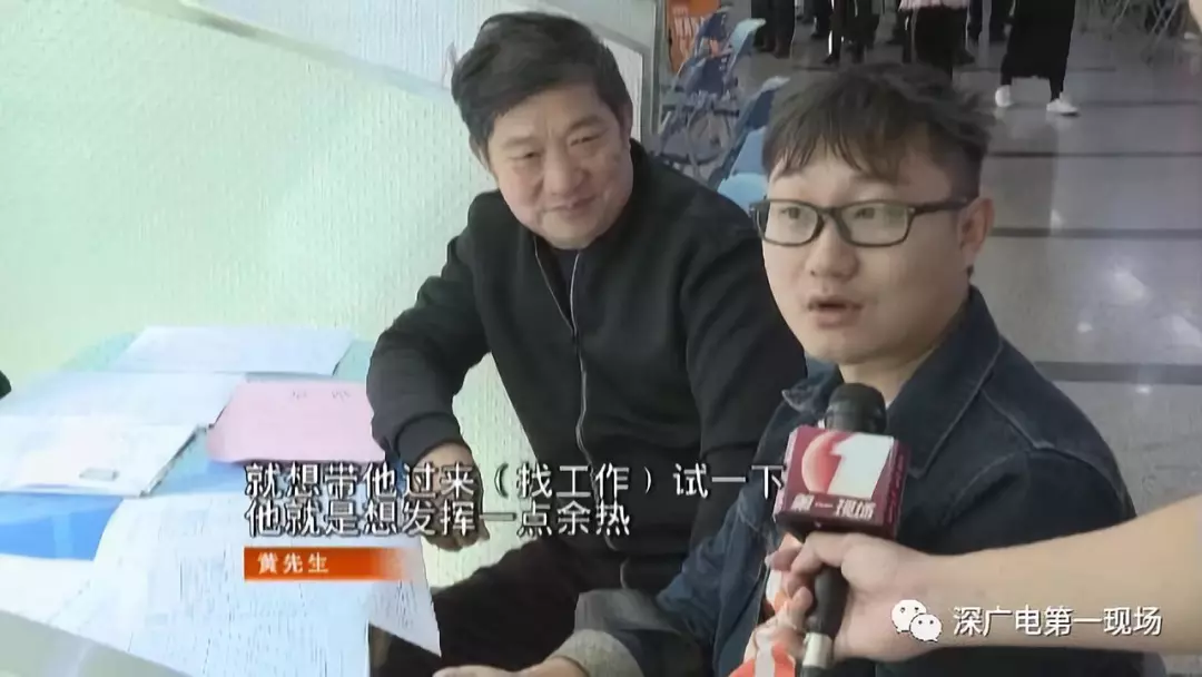 陶先生是來幫兒子找工作的,不過現(xiàn)場(chǎng)有一位黃先生,他情況剛好相反,他是來幫他57歲的爸爸找工作的。黃先生告訴記者,他帶父親過來主要是父親覺得在家里悶著太無聊了。這位57歲的父親表示,他覺得自己還年輕,也想幫孩子分擔(dān)一點(diǎn)壓力,所以想出來找份工作。